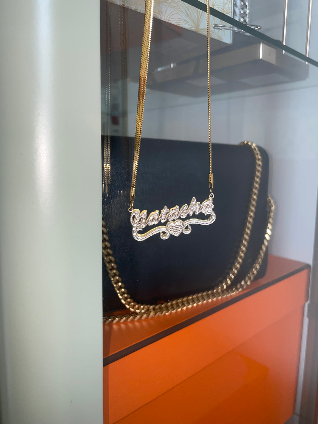 Necklace is gold double plated choose if you want top plate to be silver/gold or gold/ gold ( view pictures for reference)